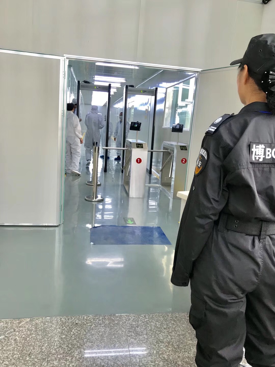 我司承接某大型電子廠34套自動平移門風淋室全部安裝驗收完畢 圖一(風淋室安裝完畢效果圖) 圖二(風淋室安裝圖) 風淋室調試圖